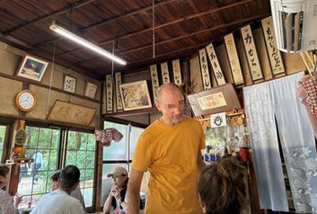 12時を過ぎたので、帰りは無料バスに乗らずに紅葉谷公園内の「もみぢ荘」あたりから左手方向に少し歩いて、藤棚の近くにある「山村茶屋」でお昼ごはんにしました。