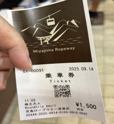 宮島ロープウエーの所要時間は往復で1時間半位はみておいた方が良いですよ。