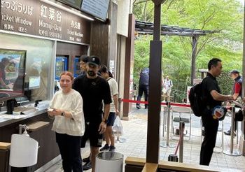 予約時間は11:00~11:15となっていたので、バスを降りてダッシュで坂道を登って紅葉谷駅のチケット売り場へ行き、割引券を出して購入です。